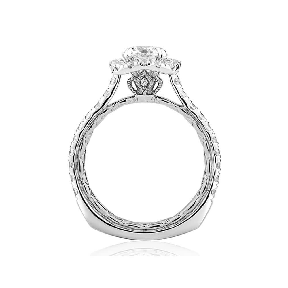 Elegant yet stunning, this classic pave engagement ring has a modish appeal. It displays a GIA certified dazzling claw set 0.60 carat round diamond set in a square frame on the brilliant diamond-studded shank with gold interior. The scintillating 0.30 carat diamonds accentuate the centre diamond and exude a sophisticated charm. This ring is available in 18K white, yellow, rose gold, and platinum 950. The jewellery is beautifully handmade to the highest standards. Shop directly from us and save over 40% when compared to high-street retail prices. We also offer unmatched 100 day returns. Buy online or book an appointment to visit our jewellery boutiques in Sydney and Melbourne.