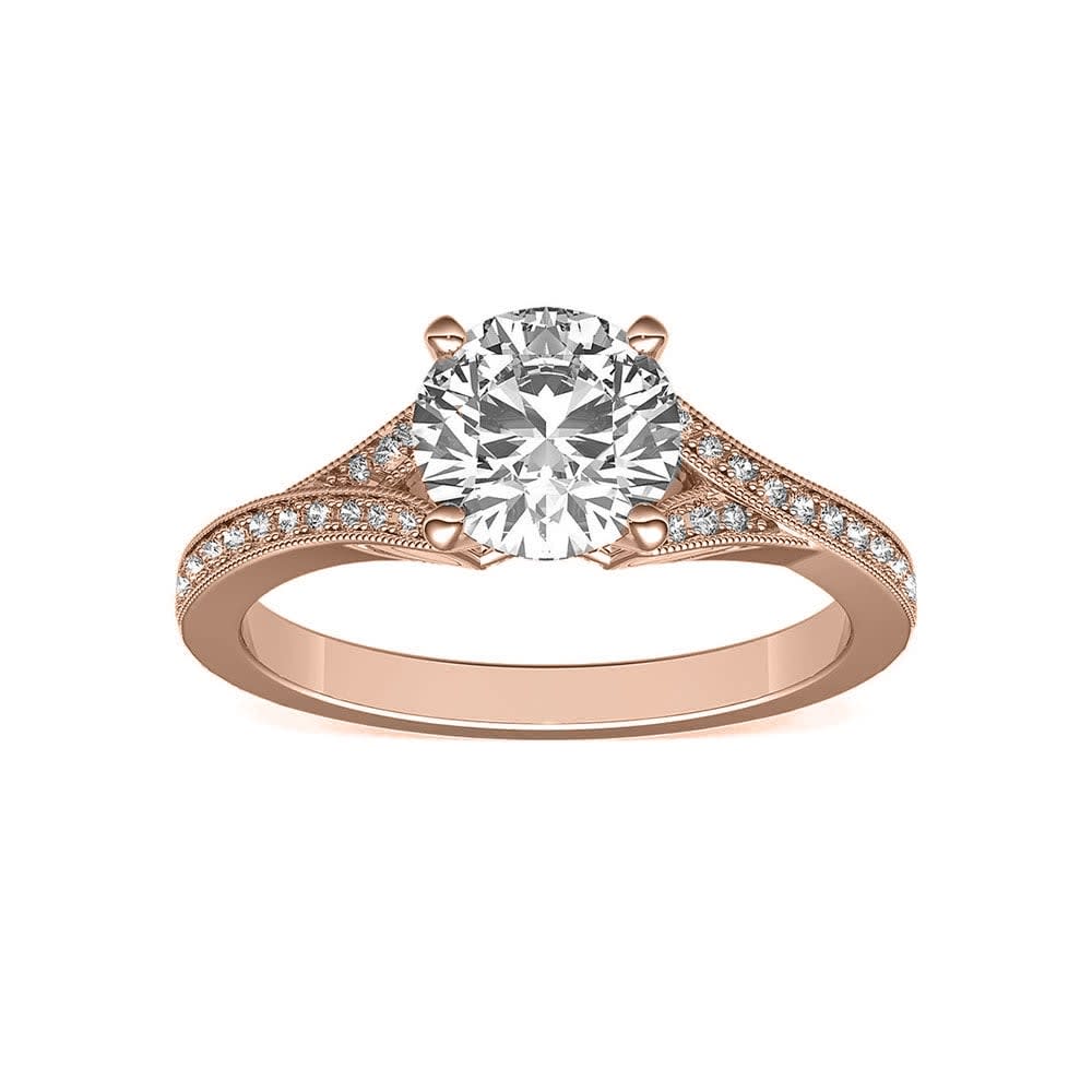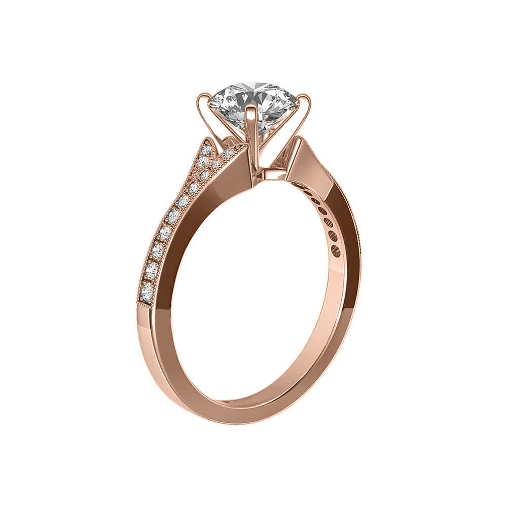 Stylish and feminine, this stunning diamond engagement ring captivates with its rich and intricate design. It showcases a GIA certified prong set 0.60 carat brilliant round diamond adorned by a V-shaped pattern on the sides. The shank is embellished with a delicate milgrain design along with 0.30 carat diamond accents adding a dash of extravagance to this jewel piece. This band is available in 18K white, yellow, rose gold, and platinum 950. The jewellery is beautifully handmade to the highest standards. Shop directly from us and save over 40% when compared to high-street retail prices. We also offer unmatched 100 day returns. Buy online or book an appointment to visit our jewellery boutiques in Sydney and Melbourne.