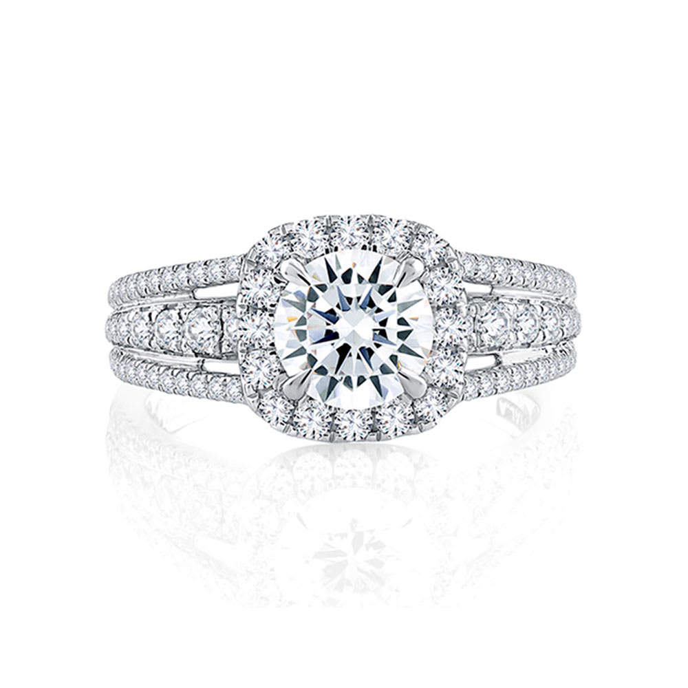 A unique and adorable engagement ring exhibits continuous sparkle and is truly impeccable. The scintillating GIA certified 0.60 carat diamond accents encircle the centre 0.70 carat diamond and adorn the triple split shank for a luminous edge. The rich and intricate design gives it a distinctive yet surreal look. This band is available in 18K white, yellow, rose gold, and platinum 950. The jewellery is beautifully handmade to the highest standards. Shop directly from us and save over 40% when compared to high-street retail prices. We also offer unmatched 100 day returns. Buy online or book an appointment to visit our jewellery boutiques in Sydney and Melbourne.