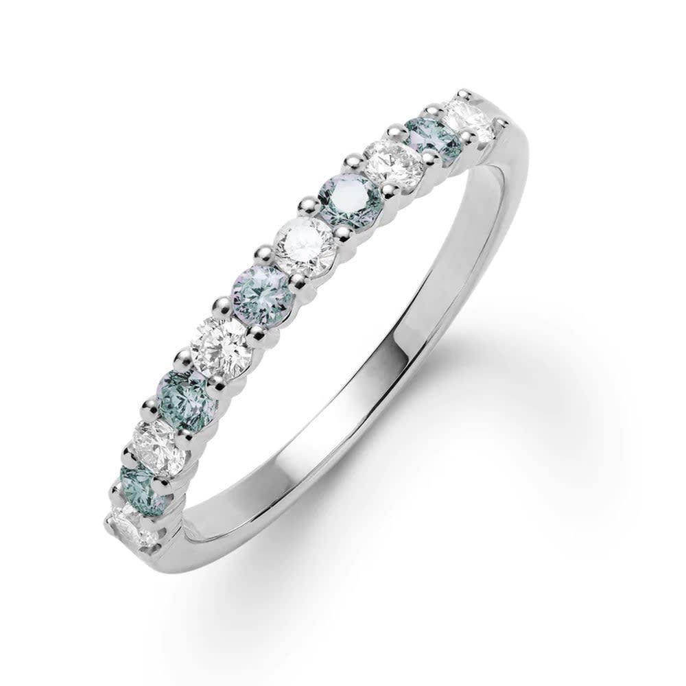 This modern and stylish ring features, six brilliant round cut diamonds and five round alexandrite stones precisely set on 14k gleaming gold. It has additional elegance thanks to the prong setting of the brilliant 2 mm stones. Captivating jewellery that can be worn alone or with an engagement ring. All Temple and Grace jewellery is beautifully crafted to the highest standards and is made at our jewellery workshop directly by us (skilled jewellery craftsmen). This is why you can save over 40% when compared to high-street retail prices. We also offer a lifetime warranty and unmatched 100 day returns. You can shop online or book an appointment to visit our jewellery boutiques in Sydney, Melbourne, Brisbane and Perth.