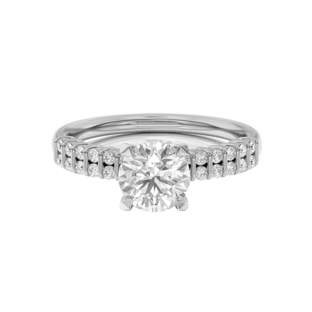 The focal point of this women's engagement ring is a round brilliant natural diamond set in a sturdy four claw setting. The diamond, which serves as the band's centrepiece, is further emphasized by a hidden halo beneath it. It has a distinctive placement of stones that emphasize the band halfway around on either side of the central stone. Because of it's setting exquisite and durable style, it is ideal for daily wear. All Temple and Grace jewellery is beautifully crafted to the highest standards and is made at our jewellery workshop directly by us (skilled jewellery craftsmen). This is why you can save over 40% when compared to high-street retail prices. We also offer a lifetime warranty and unmatched 100 day returns. You can shop online or book an appointment to visit our jewellery boutiques in Sydney, Melbourne, Brisbane and Perth.
