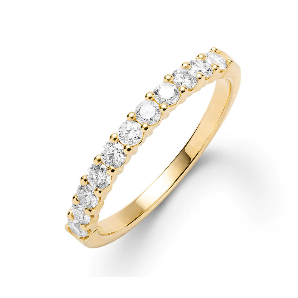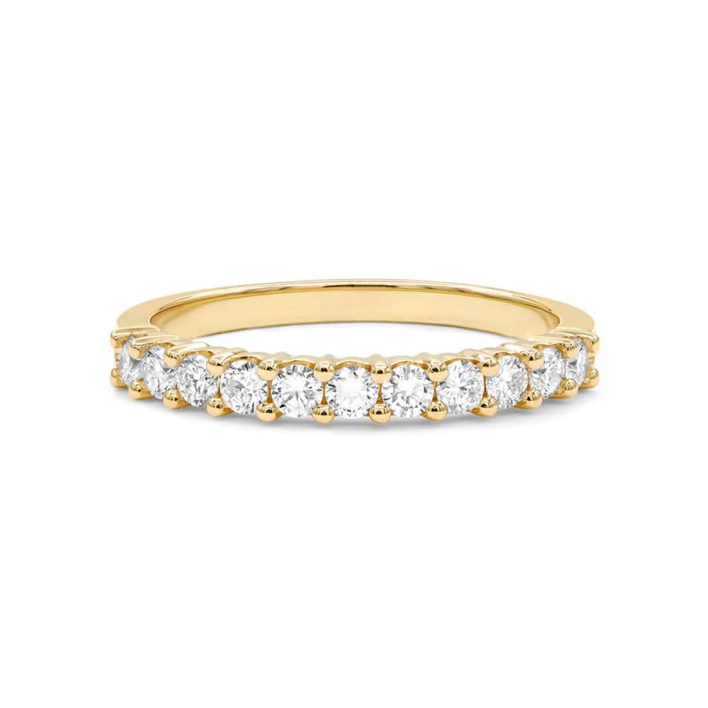 The ideal stackable band! This half eternity ring features a classic style with room for natural diamonds that are prong set in splendid gold. Stacking this band with an engagement ring is appropriate. All Temple and Grace jewellery is beautifully crafted to the highest standards and is made at our jewellery workshop directly by us (skilled jewellery craftsmen). This is why you can save over 40% when compared to high-street retail prices. We also offer a lifetime warranty and unmatched 100 day returns. You can shop online or book an appointment to visit our jewellery boutiques in Sydney, Melbourne, Brisbane and Perth.