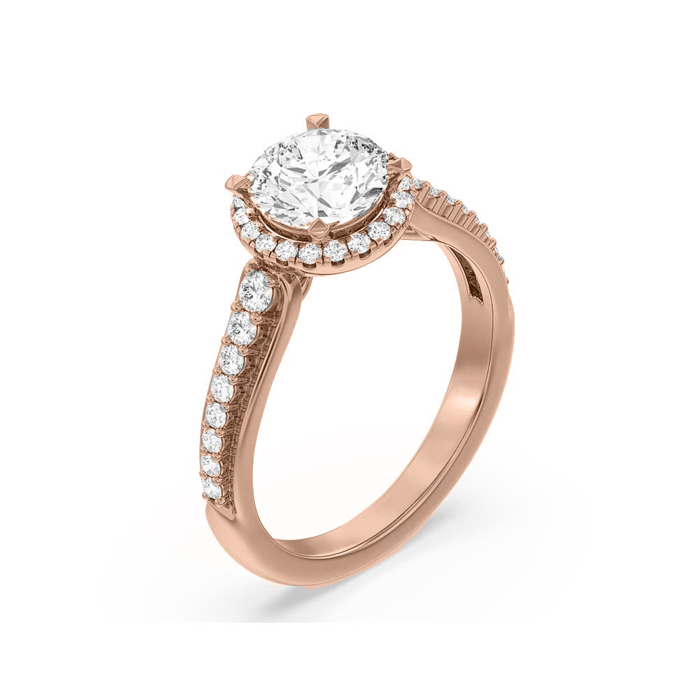 A round brilliant natural diamond serves as the centre point of this women's engagement ring, which is encircled by a halo of sparkling diamonds. The diamond halo around the primary stone gives it more shine and elegance. Shiny spherical stones decorate the cathedral's setting. The band's unique, twisted aesthetic lends it a dash of creativity and personality. All Temple and Grace jewellery is beautifully crafted to the highest standards and is made at our jewellery workshop directly by us (skilled jewellery craftsmen). This is why you can save over 40% when compared to high-street retail prices. We also offer a lifetime warranty and unmatched 100 day returns. You can shop online or book an appointment to visit our jewellery boutiques in Sydney, Melbourne, Brisbane and Perth.