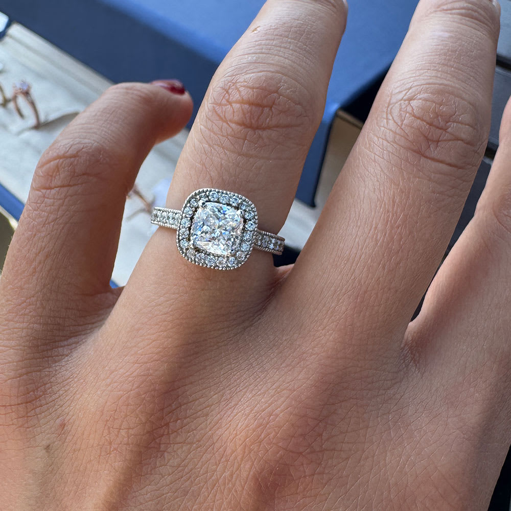 This ring is a graceful union of romantic allure and modern brilliance. At its heart lies a lab-grown cushion diamond, exuding a timeless warmth and deep sparkle that draws you in with every flicker of light. The vintage styling speaks of old-world elegance delicate migraine details, soft filigree, and gently curving prongs lend it a soft, romantic silhouette that feels like a cherished heirloom reborn. All Temple and Grace jewellery is beautifully crafted to the highest standards and is made at our jewellery workshop directly by us (skilled jewellery craftsmen). This is why you can save over 40% when compared to high-street retail prices. We also offer a lifetime warranty and unmatched 100 day returns. You can shop online or book an appointment to visit our jewellery boutiques in Sydney, Melbourne, Brisbane, Perth and Adelaide.
