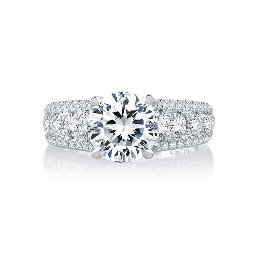 Exquisitely hand-engraved, a gorgeous engagement ring is striking and symmetrical. The band is adorned with a GIA certified 0.70 carat brilliant round diamond set in a claw setting and pave set 0.50 carat diamond accents on the shank. The intricate and rich design with a rounded interior lends a stylish edge to this stunning band. It is available in 18K white, yellow, rose gold, and platinum 950. The jewellery is beautifully handmade to the highest standards. Shop directly from us and save over 40% when compared to high-street retail prices. We also offer unmatched 100 day returns. Buy online or book an appointment to visit our jewellery boutiques in Sydney and Melbourne.