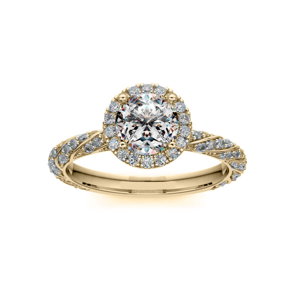 A sparkling diamond engagement ring delights with its elegant and modern appeal. It showcases a GIA certified 0.75 carat round brilliant diamond claw set on a twisted diamond-studded rope shank embellished with diamond and white gold accents. The exclusive combination of dazzling diamonds with lustrous white gold brings an unexpected twist to this striking band. The ring is available in 18K white, yellow, rose gold, and platinum 950. The jewellery is beautifully handmade to the highest standards. Shop directly from us and save over 40% when compared to high-street retail prices. We also offer unmatched 100 day returns. Buy online or book an appointment to visit our jewellery boutiques in Sydney and Melbourne.
