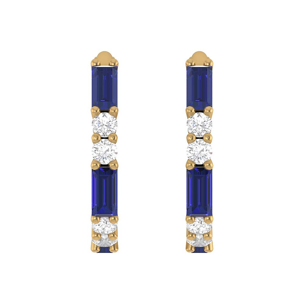 The classic and elegant Huggies set in the beauty of natural sapphires and diamonds. With the stunning baguette cut in sapphires and round diamonds. Earrings you may wear at anytime and occasion. Simple elegant and classy. A great gift idea to give to your love one or to gift to oneself. Made with the magnificent craftsmanship by our professional jewellers. Temple and Grace offer lifetime warranty and care for your loved pieces. Ask our professional sales advisors for any assistance.