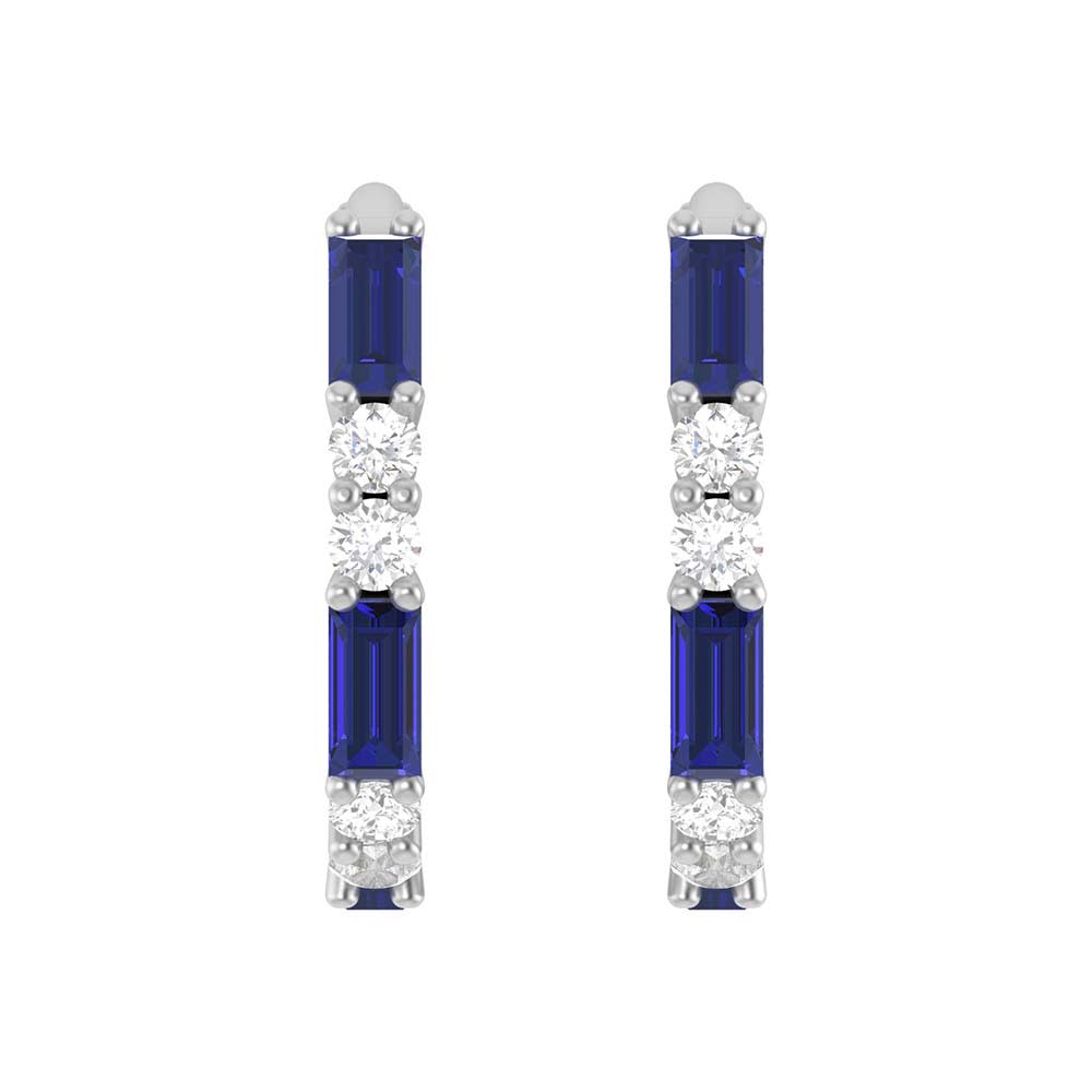 The classic and elegant Huggies set in the beauty of natural sapphires and diamonds. With the stunning baguette cut in sapphires and round diamonds. Earrings you may wear at anytime and occasion. Simple elegant and classy. A great gift idea to give to your love one or to gift to oneself. Made with the magnificent craftsmanship by our professional jewellers. Temple and Grace offer lifetime warranty and care for your loved pieces. Ask our professional sales advisors for any assistance.