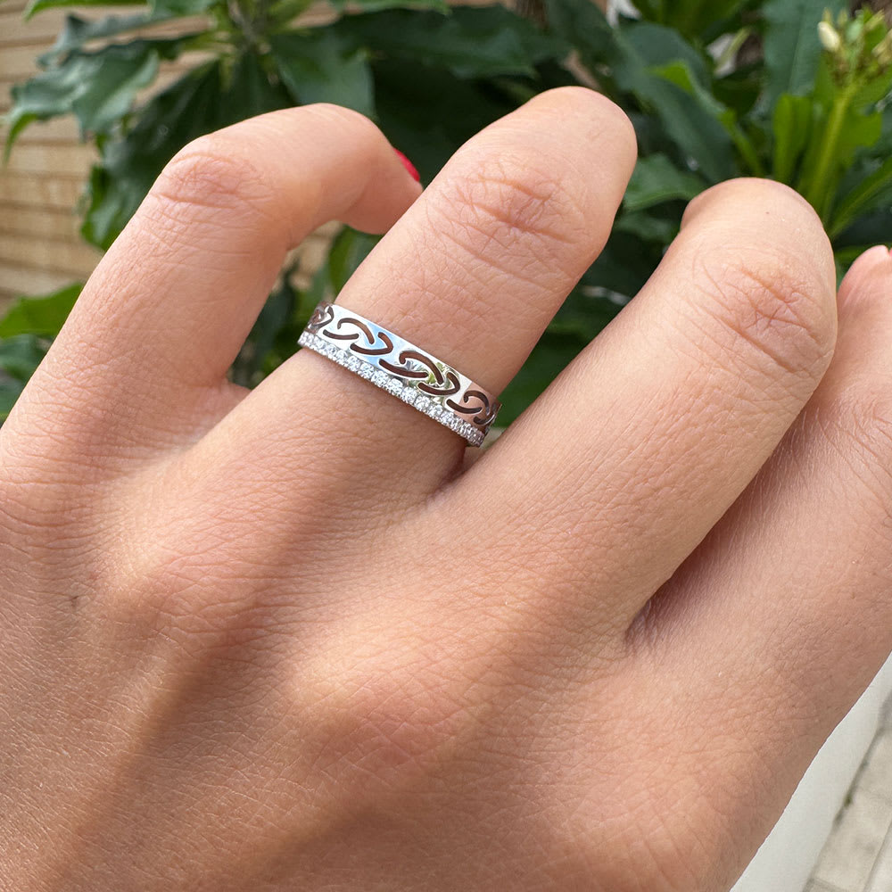 Exquisite Diamond Gold Band with Unique Pattern Elevate your style with this stunning diamond gold band, showcasing a one-of-a-kind pattern that exudes luxury and sophistication. Unique Pattern: The band features an intricate, expertly crafted design that sets it apart from ordinary gold bands. Diamond Accents: Sparkling diamonds are strategically placed to accentuate the pattern, adding a touch of brilliance and fire. Gold Quality: Crafted from high-quality gold, this band boasts a rich, warm tone that complements any skin tone. Timeless Elegance: Whether you're dressing up or keeping it casual, this diamond gold band is sure to make a statement. Perfect for: Anniversary gifts, wedding bands, or treating yourself to something special. Make a statement with this extraordinary diamond gold band, perfect for anyone seeking a unique and eye-catching accessory. Temple and Grace is the only Australian jewellery store to offer a 100% peace-of-mind guarantee. All Temple and Grace jewellery is beautifully crafted to the highest standards and is made at our jewellery workshop directly by us (skilled jewellery craftsmen). This is why you can save over 40% when compared to high-street retail prices. We also offer a lifetime warranty and unmatched 100 day returns. You can shop online or book an appointment to visit our jewellery boutiques in Sydney, Melbourne, Brisbane, Perth and Adelaide.