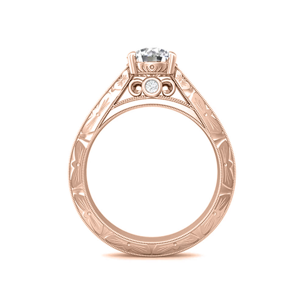 Taking inspiration from a vintage style, this solitaire engagement ring flaunts timeless elegance. It features a beautifully engraved shank adorned with a GIA certified 0.50 carat shimmering round diamond in a claw setting. Designed in 18K gold, this jewel piece looks impeccably stylish. This ring is available in 18K white, yellow, rose gold, and platinum 950. The jewellery is beautifully handmade to the highest standards. Shop directly from us and save over 40% when compared to high-street retail prices. We also offer unmatched 100 day returns. Buy online or book an appointment to visit our jewellery boutiques in Sydney and Melbourne.