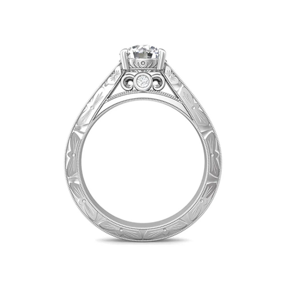 Taking inspiration from a vintage style, this solitaire engagement ring flaunts timeless elegance. It features a beautifully engraved shank adorned with a GIA certified 0.50 carat shimmering round diamond in a claw setting. Designed in 18K gold, this jewel piece looks impeccably stylish. This ring is available in 18K white, yellow, rose gold, and platinum 950. The jewellery is beautifully handmade to the highest standards. Shop directly from us and save over 40% when compared to high-street retail prices. We also offer unmatched 100 day returns. Buy online or book an appointment to visit our jewellery boutiques in Sydney and Melbourne.