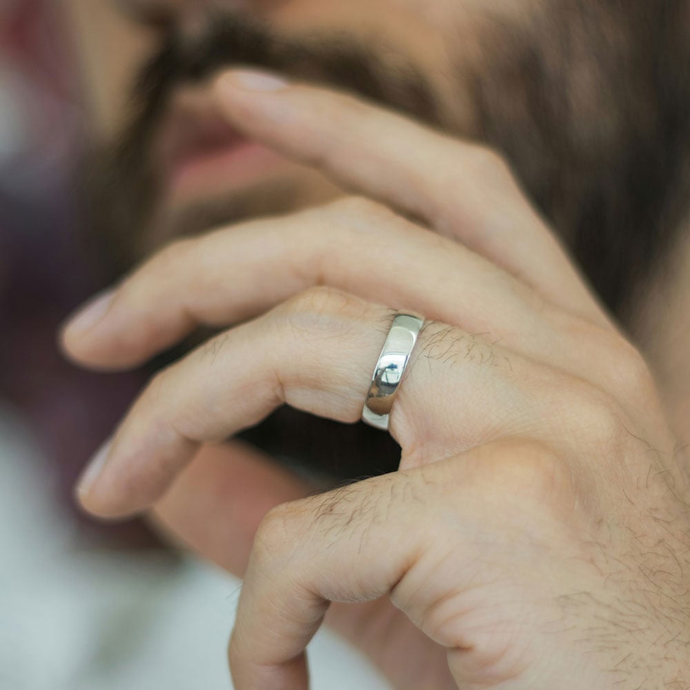 The inner surface of our rings have a beautiful smooth curvature to offer comfort for long daily wear. This curve reduces friction with the skin and allows the ring to slide on and off with ease.