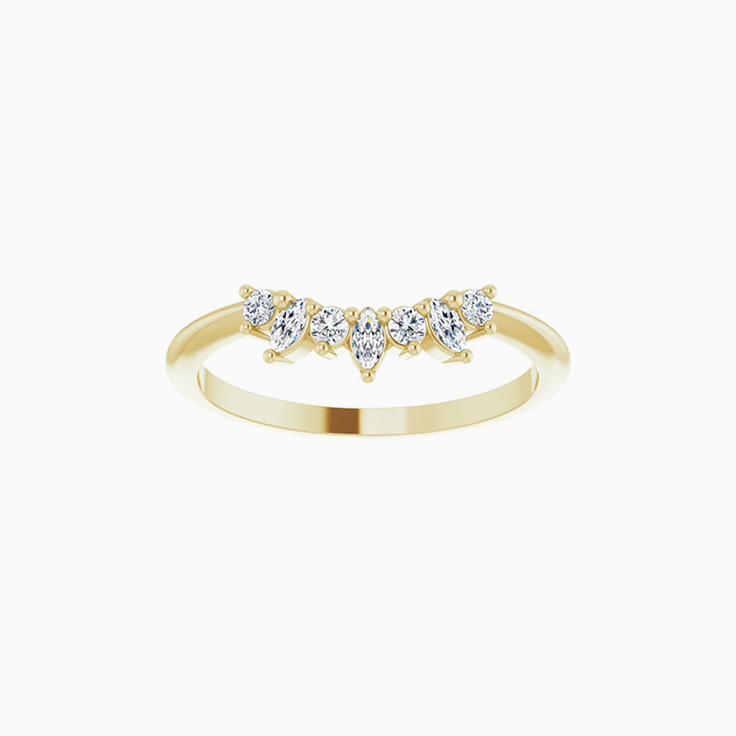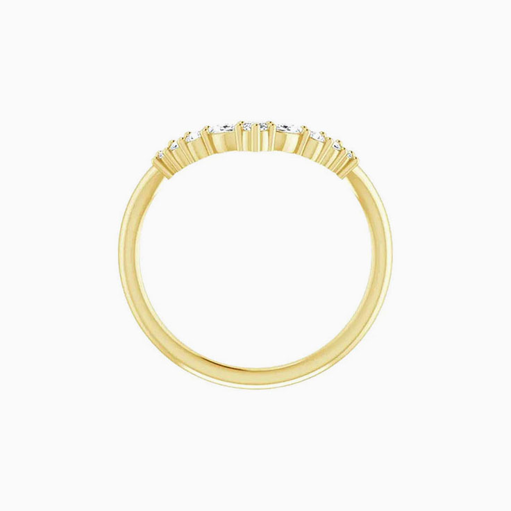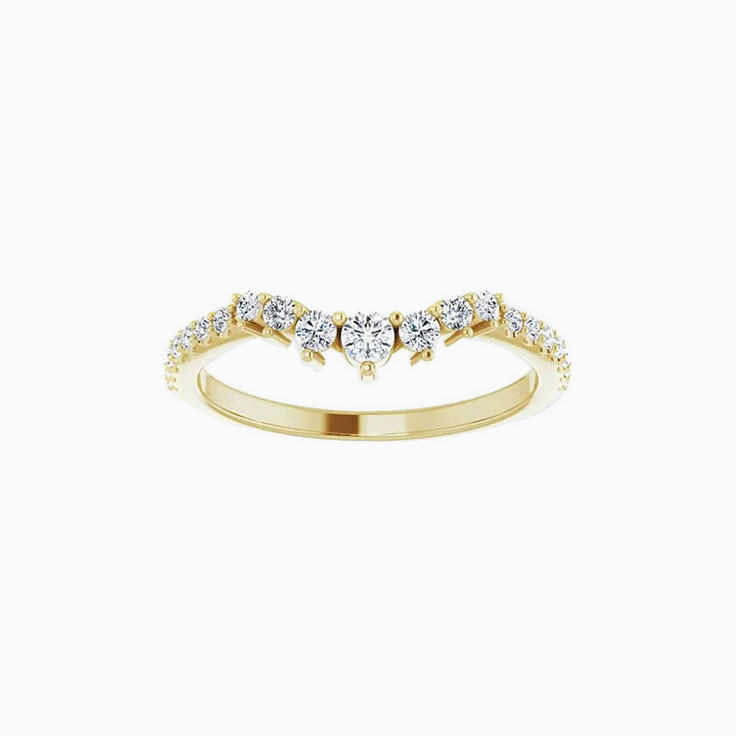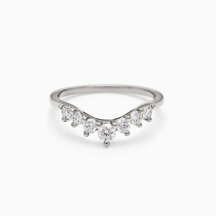 Did you know that curve rings are also called Tiara rings and fitted wedding bands? The main idea of a selecting a curved wedding band is to match it perfectly with your engagement ring. A contoured wedding band is fitted perfectly around the diamond of the engagement ring and matches the height as well as the band of the engagement ring. This curve in the band makes the rings look perfect on the finger. Whether you're shopping for a plain curved wedding ring or a curved diamond wedding band, at Temple and Grace jewellers you can find the perfect curve.
